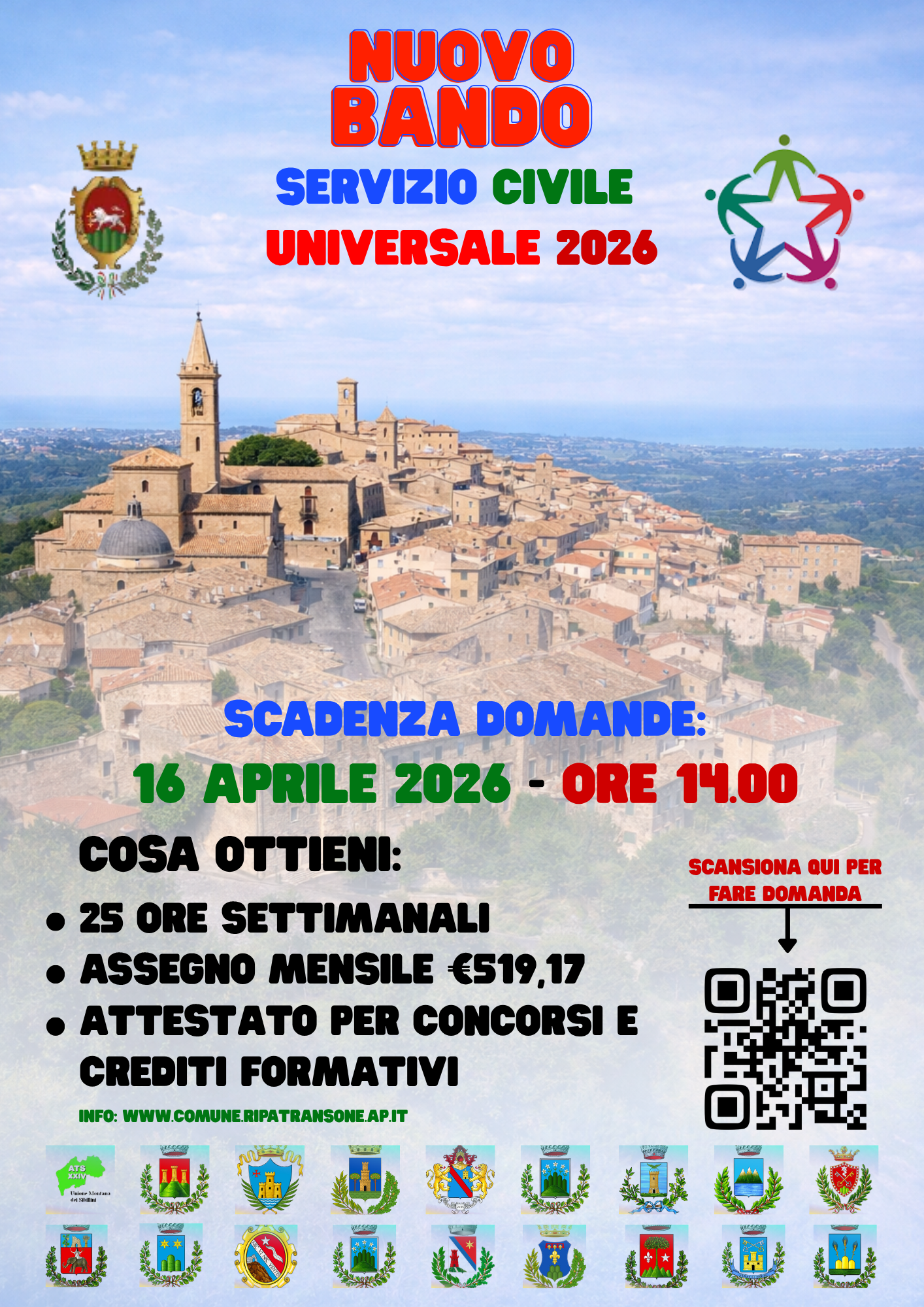 Per ulteriori informazioni è possibile consultare il sito del Dipartimento (https://www.politichegiovanili.gov.it/comunicazione/news/2026/2/bando-ordinario-2026/) o contattare gli Uffici comunali al numero 0735917310 i giorni Lunedì, Mercoledì, Venerdì dalle ore 10.00 alle ore 13.00.